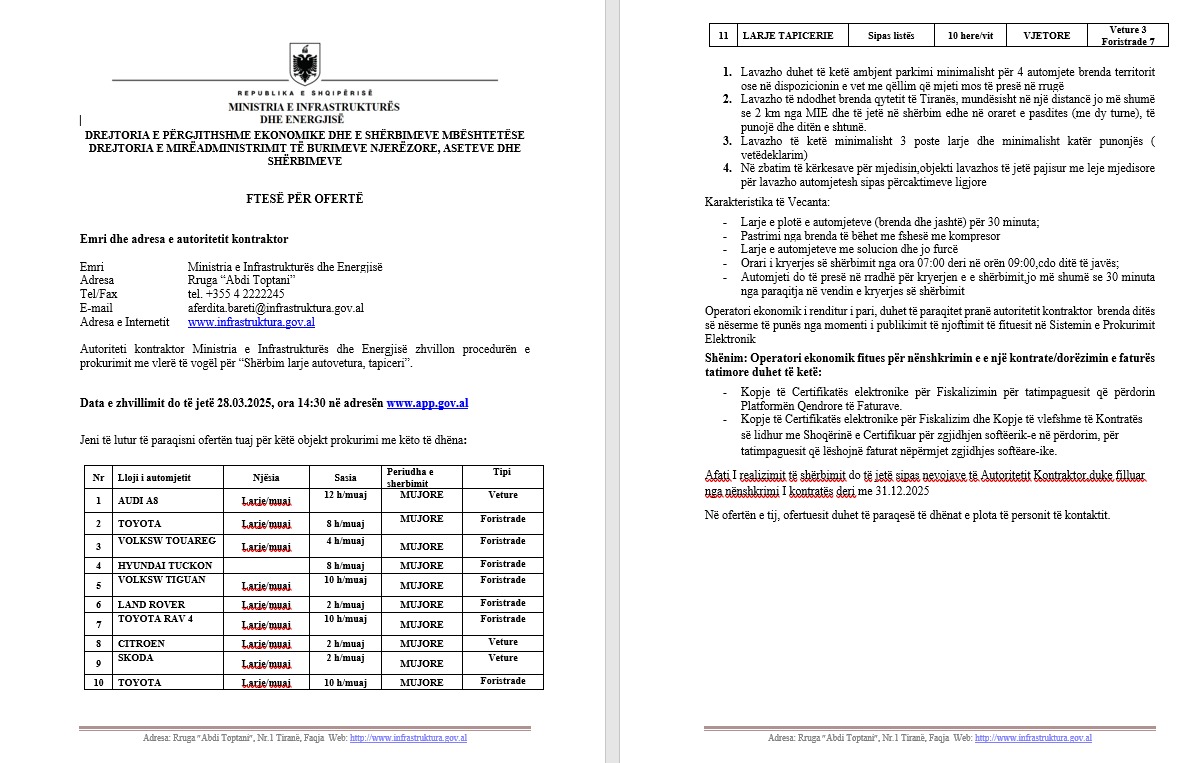 Në qendër të skandalit është një tender i fundit për larjen e makinave të Ministrisë së Infrastrukturës dhe Energjisë, ku për shërbimin e larjes së një automjeti parashikohej një shpenzim prej rreth 10 mijë eurosh në muaj. Dokumentet e tenderit duket se ishin përshtatur posaçërisht për lavazhin e familjes Hoxha, një skemë e dyshimtë e cila, pas denoncimit publik nga lideri i opozitës, Sali Berisha, çoi në anulimin e procedurës nga MIE, nën pretendimin e “gabimeve dhe mangësive” në dokumentacion.